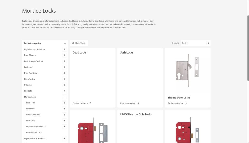 - Panic & Escape Locks: Provides locks that meet safety evacuation requirements for public buildings, schools, hospitals, and other similar settings.
