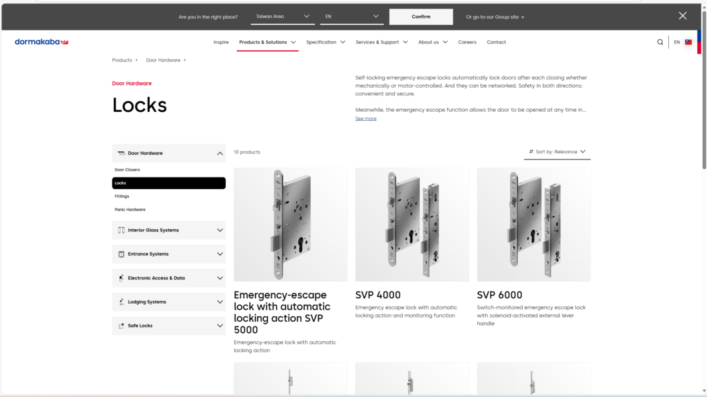 According to official information, Dormakaba’s product range is extensive. Below are its main series and sub-products in “Door Hardware/Locks”: