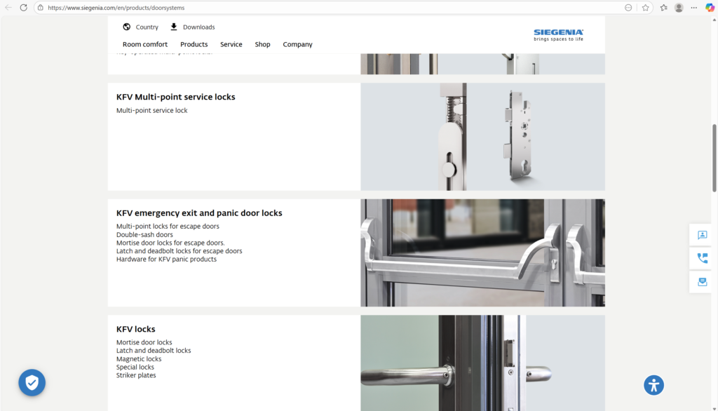 KFV’s products focus on multiple aspects of door systems, including locks, drives, escape/emergency doors, and hinge-side security.