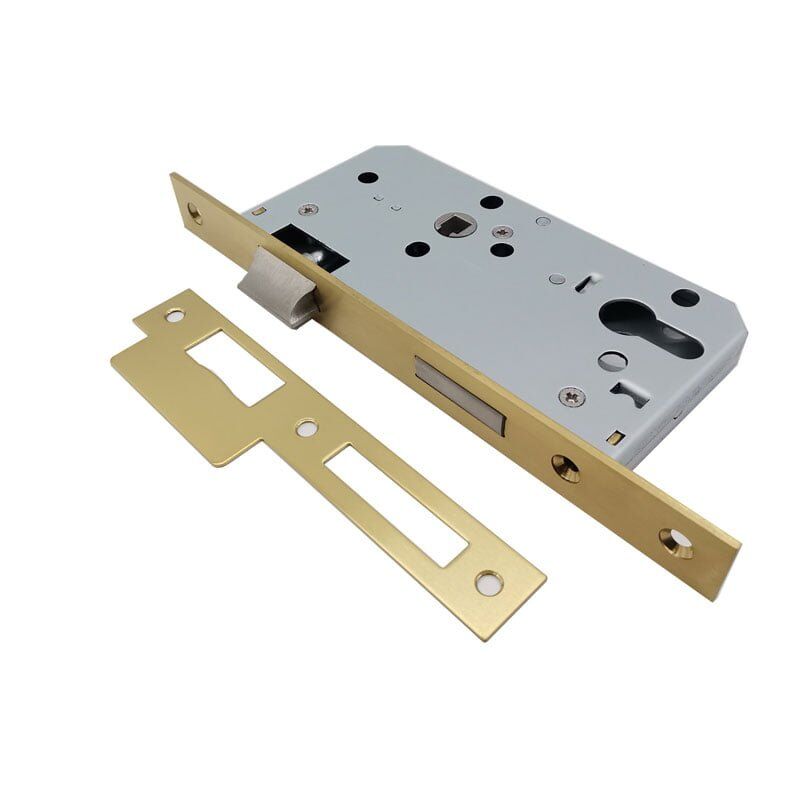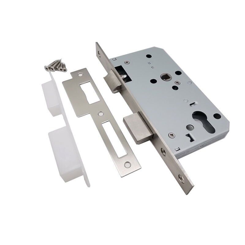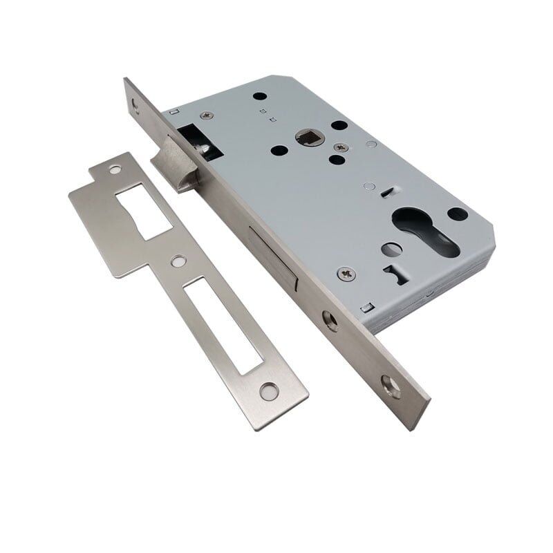• Mortise lock can be operated from both sides by lever handles to withdraw the latch